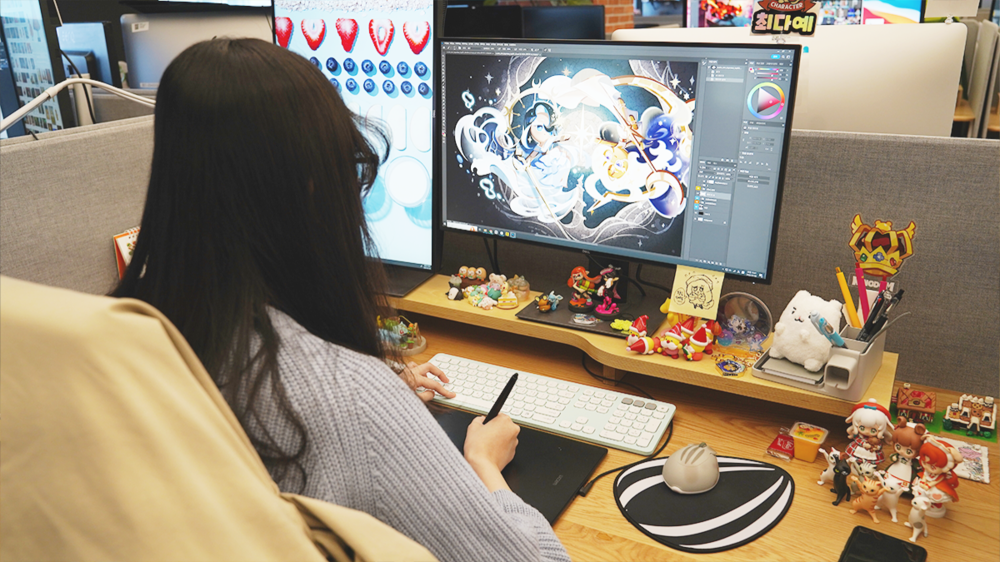 보경 : 안녕하세요, 캐릭터아트셀 정보경입니다. 쿠키런 킹덤에 등장하는 몬스터 디자인을 포함해 여러가지 아트 리소스들을 작업합니다.