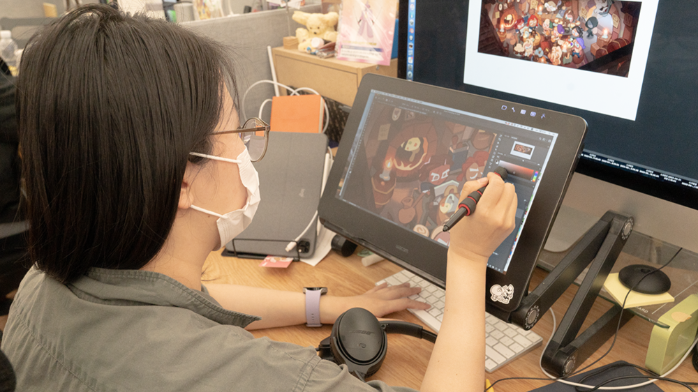 나흔 : 안녕하세요. 혜진님과 공동 아트 디렉터를 맡고 있는 김나흔입니다. 올해 6월에 입사 10년을 맞이했어요. 아트 디렉터가 되기 전에는 일러스트셀 셀장으로서 타이틀 등 게임 전반에 들어가는 일러스트를 담당하고 있었습니다.